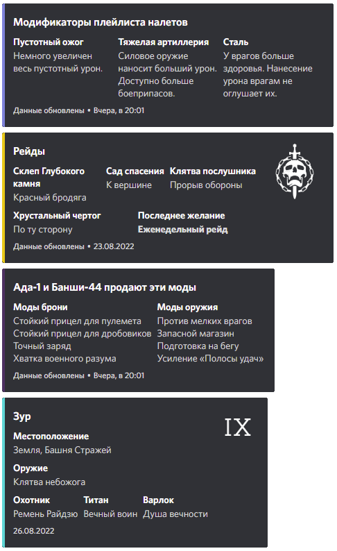 After every reset the bot sends Destiny 2 information to registered channels